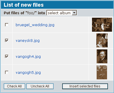 That's why you should make up your mind in advance about the folder and file structure of your FTP uploads. They need to go into the albums folder, and it's advisable to create a clever structure of folders and sub-folders there.